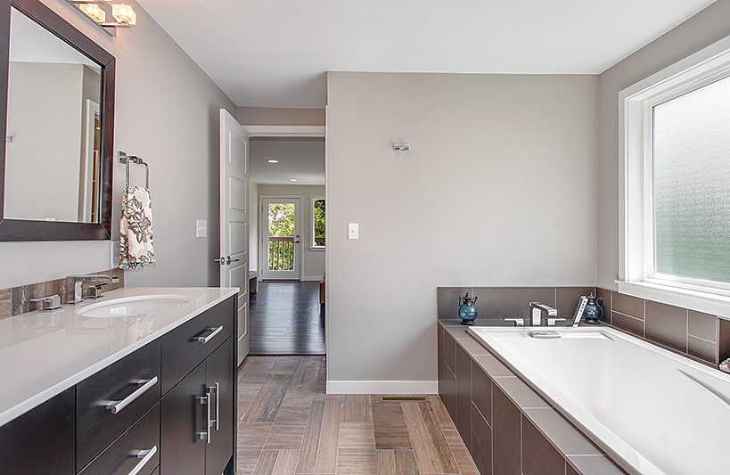 Wood-look tile is a perfect alternative to real wood in the bathroom because it holds up well to water, moisture, and everyday wear—and it's easy to clean, which any homeowner will appreciate.