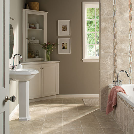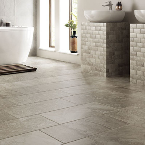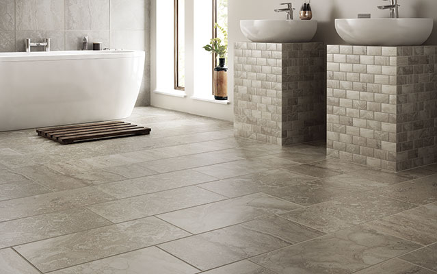 For example, Acacia Valley Color Body porcelain tile has the same rich color variations as natural wood. It comes in multiple natural shades and looks extremely elegant when used on the floor of a bathroom. It's created with Tru-Edge technology, which reduces the size of grout lines, giving it an extremely sophisticated, realistic look.