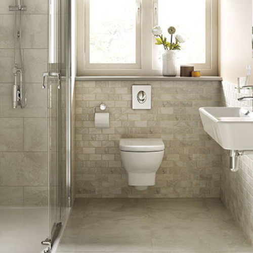 For example, Daltile’s Esta Villa glazed porcelain tile offers the same high-end look as marble, but has the versatility of porcelain. It comes in a few neutral shades and can be cut and shaped to be the perfect fit for any space. Another option is Daltile’s Florentine glazed porcelain, which comes in a handful of color options, including a classic white and gray option that will add a timeless touch to any bathroom.