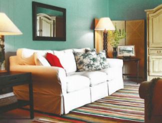 For additional visual interest, suggest that your customer use paints of various sheen levels in the same room. A semi- or high-gloss paint is always a good choice for trim; while a more unusual treatment is to use satin or eggshell finish paints on ceilings and walls.