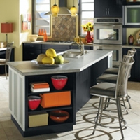 If you love to cook and entertain, your kitchen island design can include a cooktop, microwave cabinet, full sink or bar sink, under-counter refrigerator or coffee station. It can have raised seating to create a bistro-like atmosphere, or cozy booth seating built on one side of it.