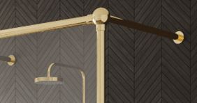An elegant, vintage-inspired shower door modeled after exposed pipes and metal handrails. This customizable door will allow you to embolden your bathroom with imagination and high-end design. Its classic-décor, 2-inch pipe framing is held together by various fittings, making for a functional, elegant door.