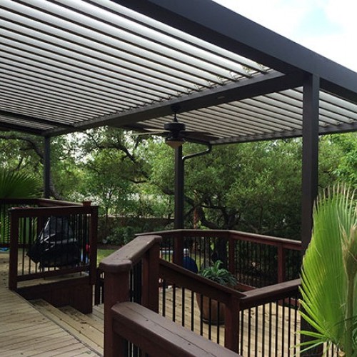 Another excelent product for patio covers is the Equinox Louvered Roofs. The Equinox Louvered Roofs are versatile, solar-powered and motorized adjustable patio cover. They are a perfect combination of style and function to complement your outdoor living space. They resist 98% of the sun’s dangerous rays and are waterproof. You can slect from 4 powder coated frame finishes. The Equinox Louvered Roof is solar powered for the energy efficiency and ease of operation and is the only louvered roof company that provides a lifetime warranty.